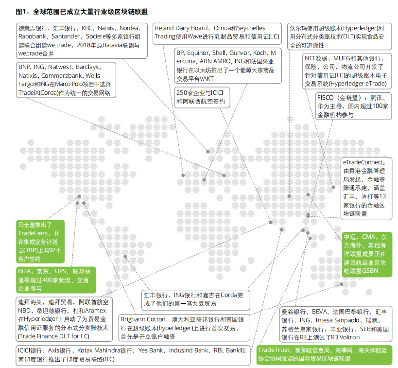 纵观商业进程,区块链技术应用正在经历单一领域到多元化领域转变:从最早的与数字货币等相关的金融领域拓展到以供应链管理、供应链协同、国际贸易为首的相关应用领域。顺应这样的产业领域的拓宽,传统行业企业也纷纷通过主导成立、加入行业级或企业级区块链联盟,积极寻求与更广阔数字化生态的对接机会,目前全球范围已成立大量行业级区块链联盟。
